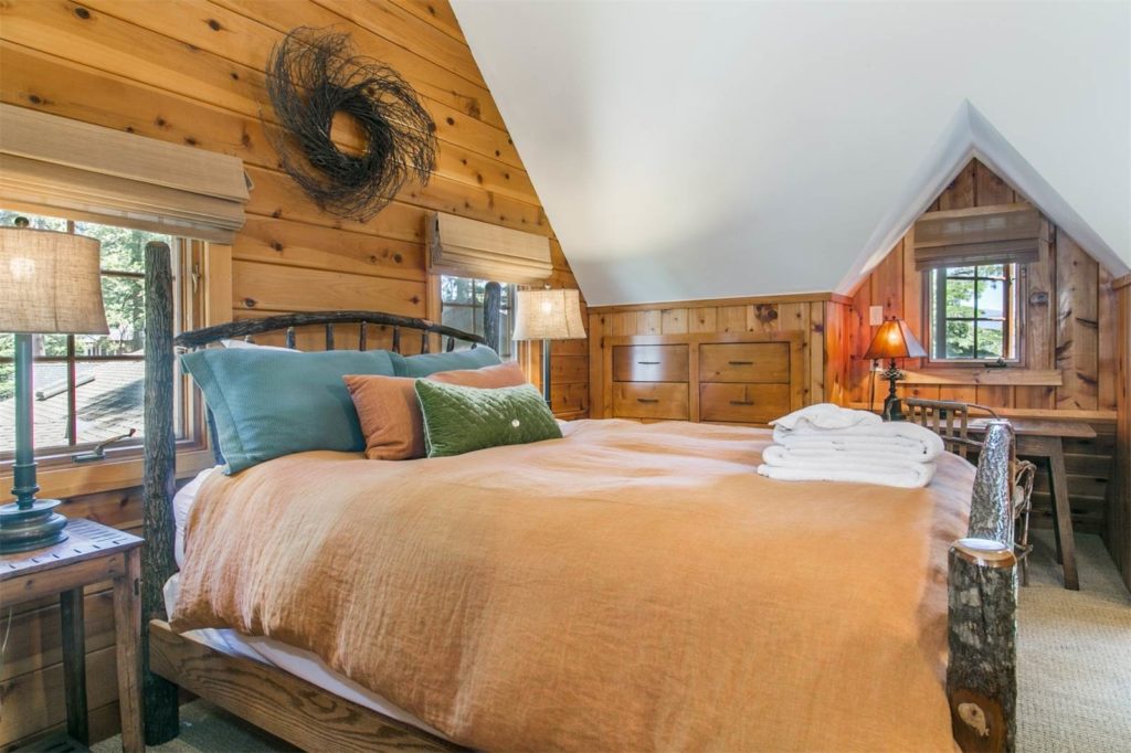 “It’s a great old-but-new Tahoe cabin,” says listing agent Tamara McKinney of Sierra Sotheby’s International Realty. “From here you can watch the alpenglow from the lakeside hot tub, or enjoy effortless lake access. There are endless recreational activities, and the two expansive decks are perfectly positioned for all day sun, offering unmatched views of the lake.”