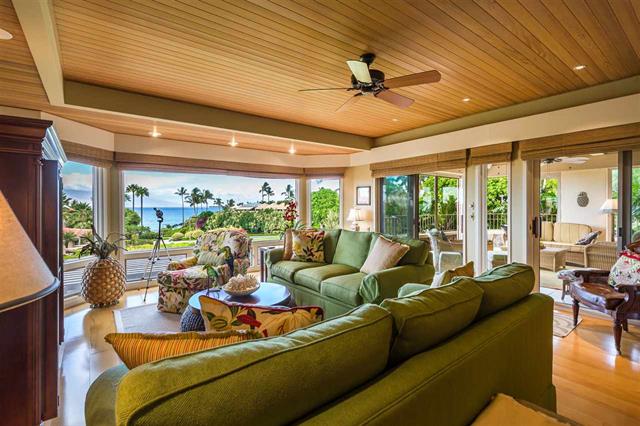 The three-bedroom, four-bath, 2,554-square foot home has spectacular oceanfront views. It’s the largest floor plan at Wailea Point, a prestigious venue which offers gated entry, 24-hour security, two recreation pavilions with kitchens, four pools including a 25-meter lap pool, two spas, tennis courts, a fitness center, and more. Unit 801 is located near the community’s gym, family pool, and quiet pool area close to the beach. The property is listed for $3.699 million. Here’s a look: