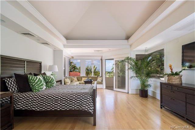 The master bedroom is on the upper floor to take advantage of the views and breezes. It’s a large space with a great raised ceiling and private lanai.