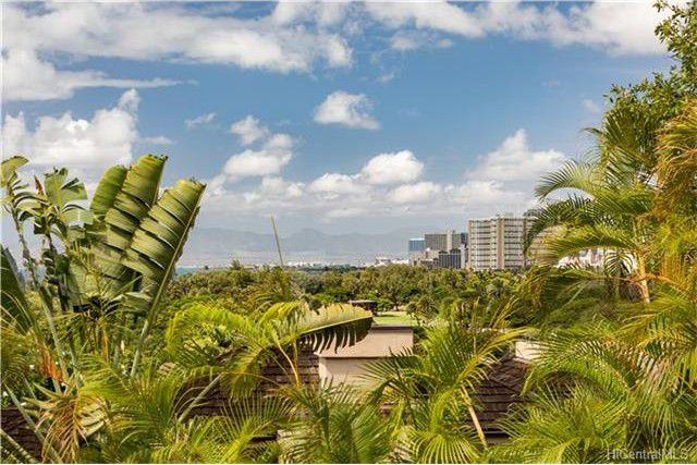 From the master bedroom lanai, here’s the view of Waikiki, mountains and ocean through the palm trees. At night the lights of the city twinkle against the pitch black of the Pacific Ocean. Luckily, that’s not the direction of the sunrise, so no worries about a blast of sun in the morning.