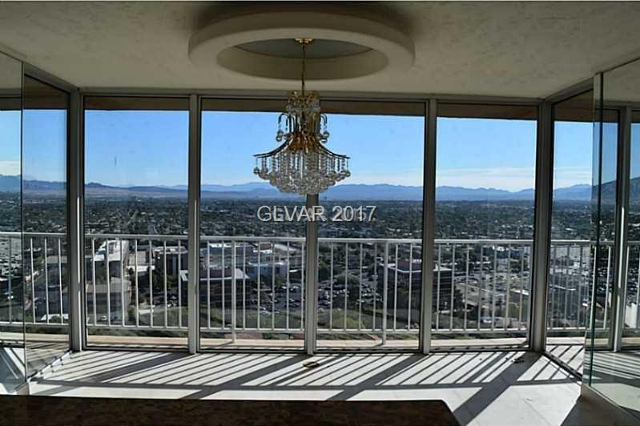 Unit 27F is the crème de la crap. You know this because it’s priced at $295,000 for 1,856 square feet ($159 a foot) and the listing only shows a couple of view pictures.  The chandelier above hints at the state of things, but the view is unquestionable.  HOA dues are a reasonable $909 a month and property taxes are said to be $1,727 per year (a heck of a lot less than Dallas and Nevada also has no state income tax). FYI, if you’d like something a pinch smaller with a Strip-facing view, unit 27C is a 1,534 square foot 1/2 on the market for $225,000 or $147 per foot and is in equally dire condition.
