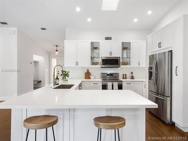 We are partial the open floor plan, incredible skylights brining natural light into the home, and of course, the sleek quartz kitchen. And that spectacular pool is the gift that keeps on giving in that steamy Florida weather.