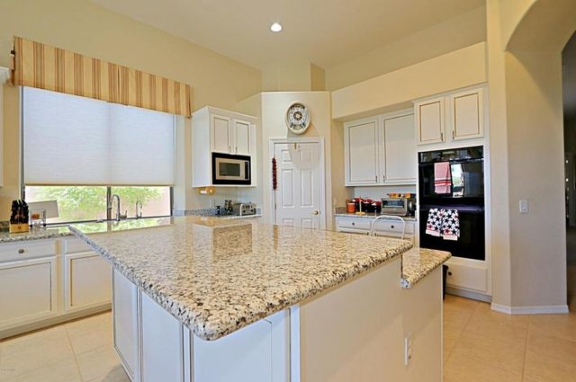 This three-bedroom, two-and-a-half bath home sits in the golf course community of Legend Trail, on a lot that backs the golf course and desert.