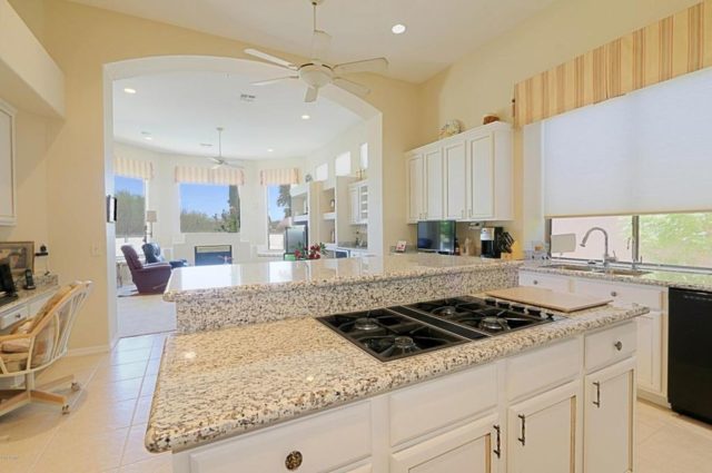 And those three pools? The one in the backyard includes a spa, and is part of a backyard oasis that includes a built-in barbecue and a kiva fireplace.