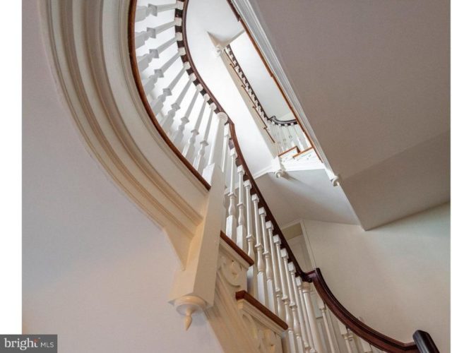Off the piazza is the original staircase, complete with its 18th-century handrails so intricate its listing agents, Mary Genovese Colvin and Margaux Pelegrin with Compass, say you’d swear they were created with the aid of a computer, but are actually the result of master post-Revolutionary War craftsmanship.