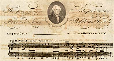 But the junior Hopkinson would forge his own place in U.S. history, penning the lyrics to “Hail, Columbia,” the first national anthem — a song that would remain so until the 1890s — at his home in 1798, using a melody written by Philip Phile 10 years prior.