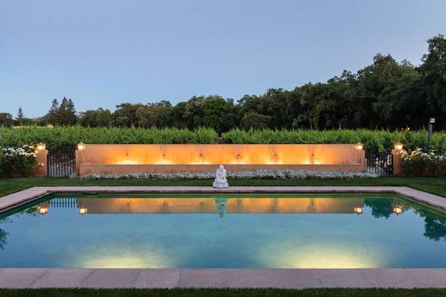 And nothing beats a dip in the zen-like pool with water features or lounging with a nice cabernet beneath the pergola patio. The lush grounds, guest house, private pond, and enchanting pathways allow you to hide away in one luxuriously posh post.