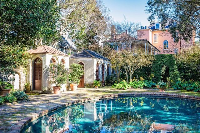 The Charleston stunner sits on a lush .29-acre lot with abundant heirloom camelia bushes. Outside, it boasts five landscaped garden rooms, a pool, and high brick walls for ultimate privacy. All of this backs to Ford Court, making it a rarity indeed!