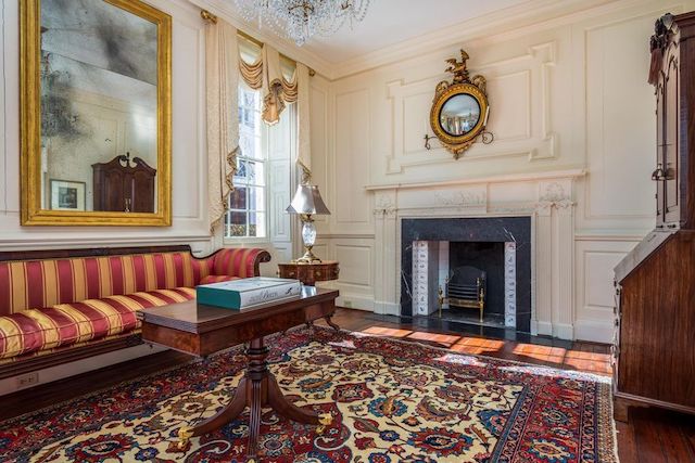 The Category 1 Georgian double house has a stunning ballroom, a grand drawing room, and a cypress paneled library. But the 15 fireplaces with King of Prussia marble surrounds, delft tiles, plus bespoke millwork and moldings are sure to make you swoon.