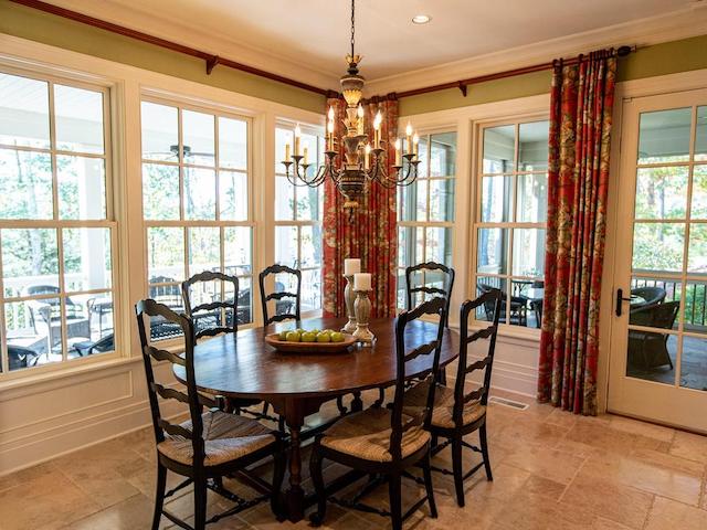 Outdoors, you’ll enjoy multiple porches and patios. We love the screened-in porch with wood-burning fireplace for outdoor dining. Plus, all of this is surrounded by immaculate grounds bursting with fall color. But what really sells this head-turner are the spectacular amenities.