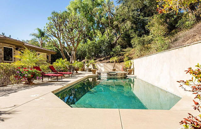 So what does $8 million buy? For starters, some pretty spectacular panoramic mountain and canyon views. Initially constructed in 1983, but completely redone in 2005, the lushly-landscaped dwelling sits on a 38,315-square-foot lot tucked away behind a gate and tall hedges in LA’s exclusive Fryman Estates neighborhood.