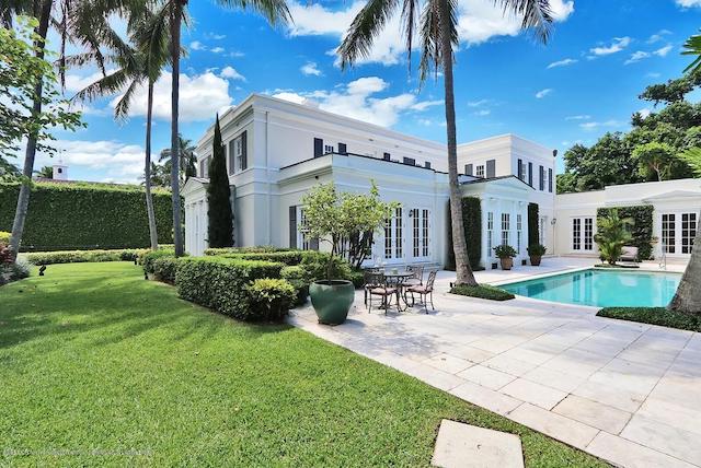 Lastly, the home’s exterior is the pièce de resistance. This is where your poolside oasis awaits! A sky-high privacy hedge envelopes the grounds, expansive patio, and crystal blue pool for a private secluded feel that is a trademark of Palm Beach.
