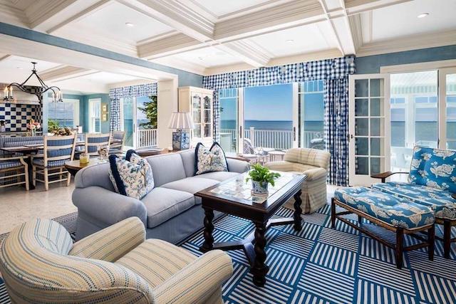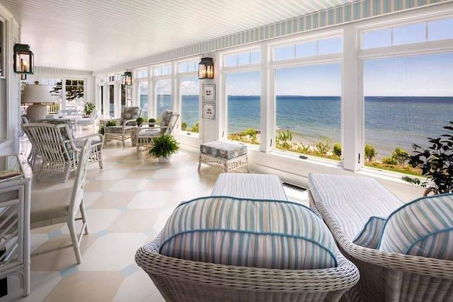 First up, our splurge. This mutigenerational waterfront residence is in a word breathtaking. It overlooks the pristine waters of Nantucket Sound and comes complete with its own private sandy beach. But that’s not all.