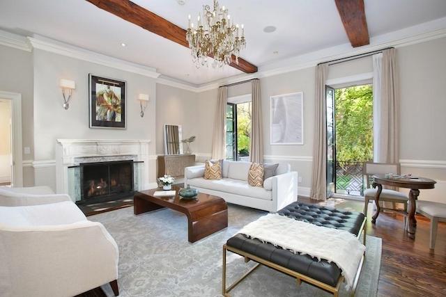 Next, we love the effortless design. The graceful home features exquisite hardwoods, moldings, and crystal chandeliers. And all of this is met by ample windows, filling the home with natural light. There are two stately fireplaces, radiant heat flooring, a handsome study, and beautiful French doors.
