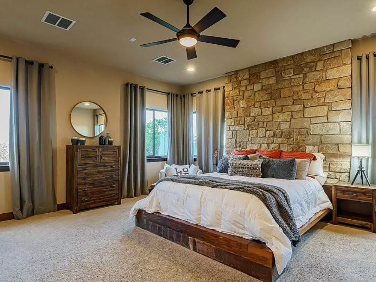 As you enter the three-bed, three-bath home through the custom double iron doors, you’re greeted by an enclosed outdoor courtyard with a gas-burning fireplace. Stonework throughout the house, natural light, and copious outdoor living spaces connect the home with its beautiful surroundings. The property is situated on a greenbelt lot and enjoys spectacular panoramic hill country views and sunsets.