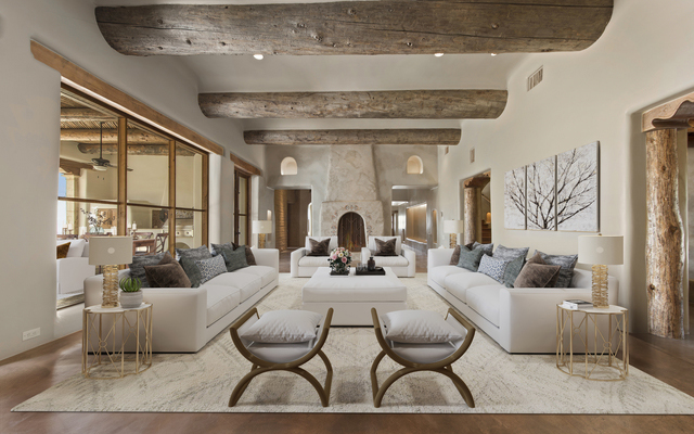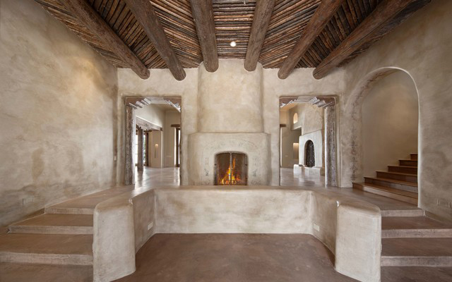Raw wooden beams cut through the ceilings and subtle details evoke the Southwest.