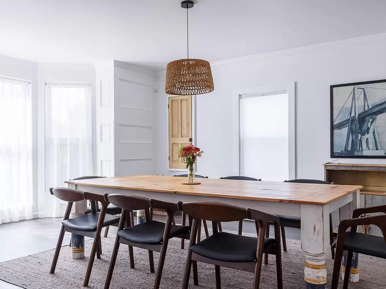 The colonial white and teal exterior of this Splurge belies the modern interior within. This home was thoroughly renovated to encompass the best of both worlds– a nostalgic upstate attitude with contemporary comfort and design.