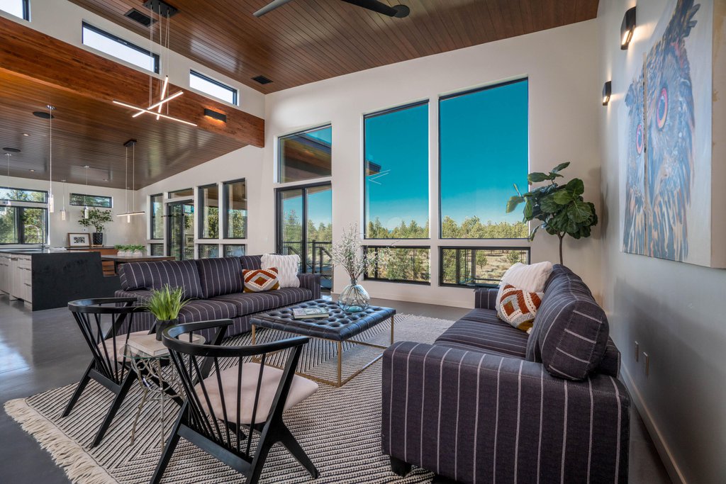 Luxury doesn’t come cheap. Listed at $4,495 million, this contemporary home sports an unparalleled setting overlooking the Cascade Mountains and High Desert landscape. Floor-to-ceiling windows in the spacious Great Room open up to a covered back deck, perfect for entertaining al fresco.