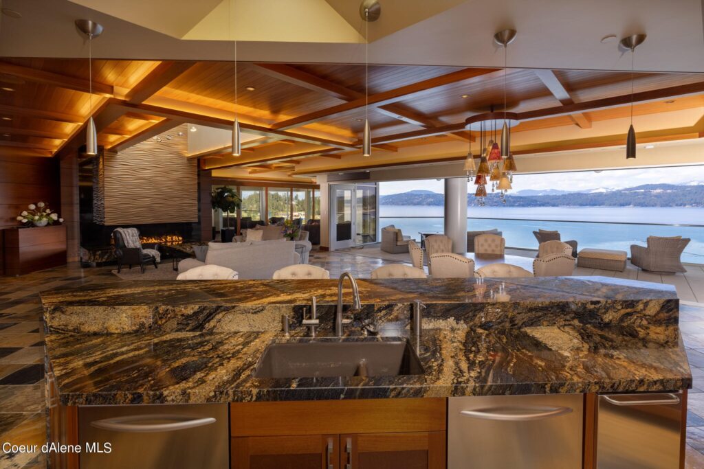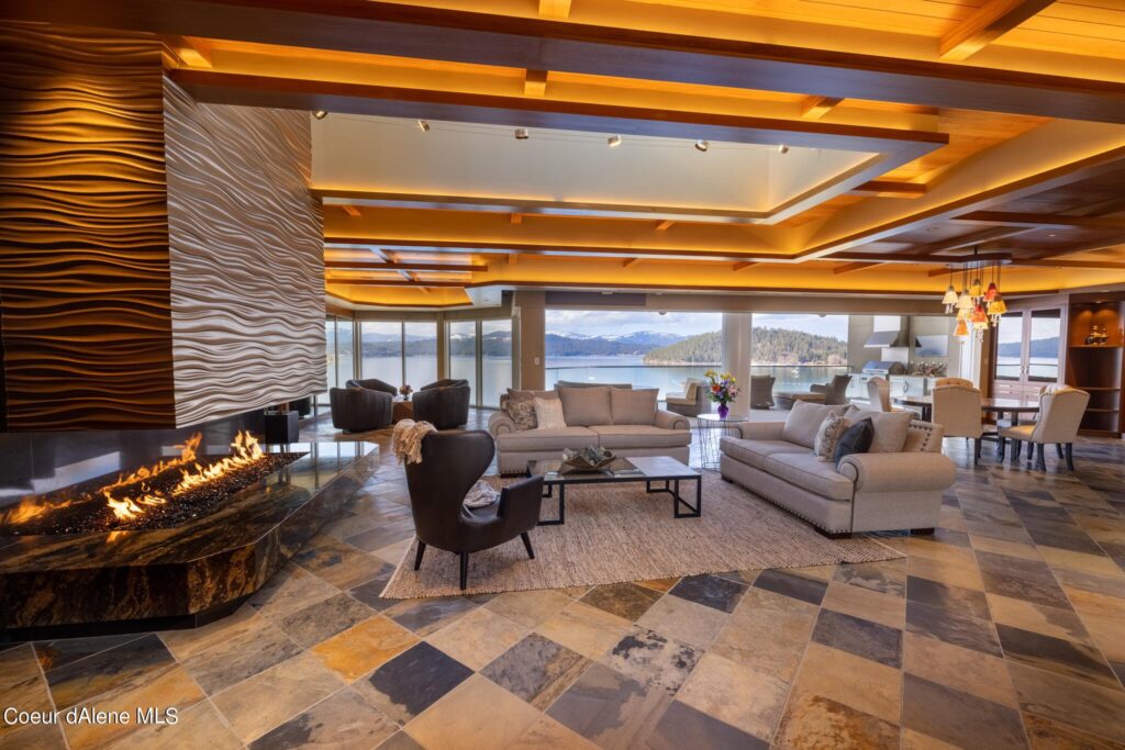 This 6,296-square-foot penthouse features raised ceilings, transom windows, and tons of natural light. The $6.995 million price also includes a Coeur d’Alene Resort Golf Club membership and private slip in the on-site marina.