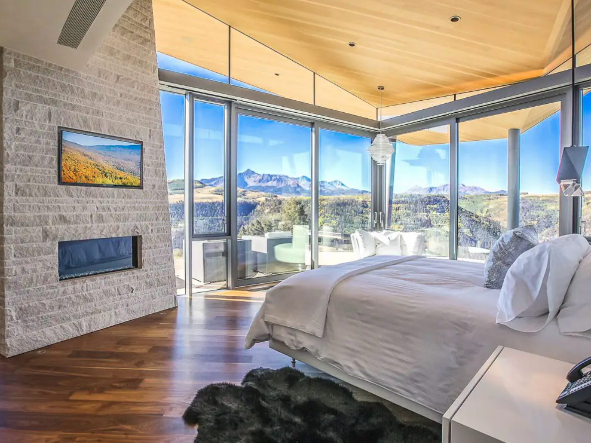 The very definition of spacious is this Midcentury Modern mansion in Telluride, Colorado. There’s a babbling stream and still pond on-site and, of course, the beautiful views of the San Juan Mountains as a backdrop, which you can enjoy from the many floor-to-ceiling glass windows inside the home.