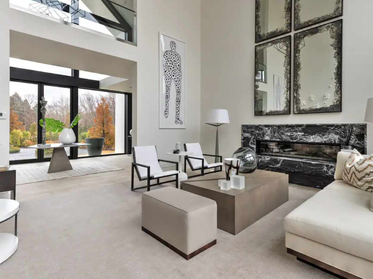True to the overall Hamptons energy, this luxury stay in Southampton is artistic and oozes style and sophistication. The soaring ceilings and broad windows to match create plenty of natural light to illuminate all of the elegant art on the walls.