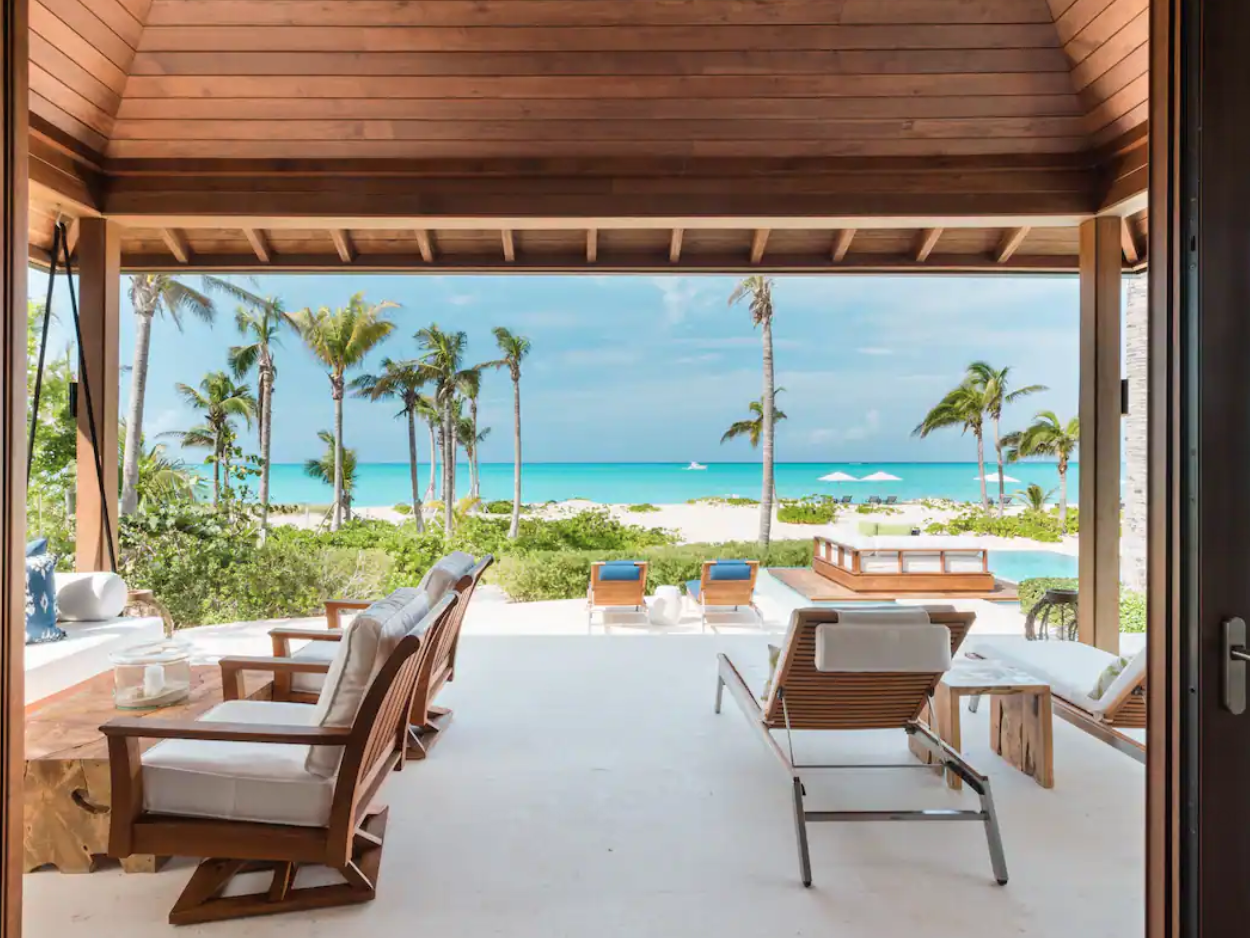 Infinity pool? Check. Palm trees? Check. Private chef? Check. This home is nestled right on the sugar-white beaches of Turks and Caicos and has all the attributes of an idyllic island escape. I mean, I feel relaxed just looking at the pictures of those poolside loungers and airy, teaky interiors.