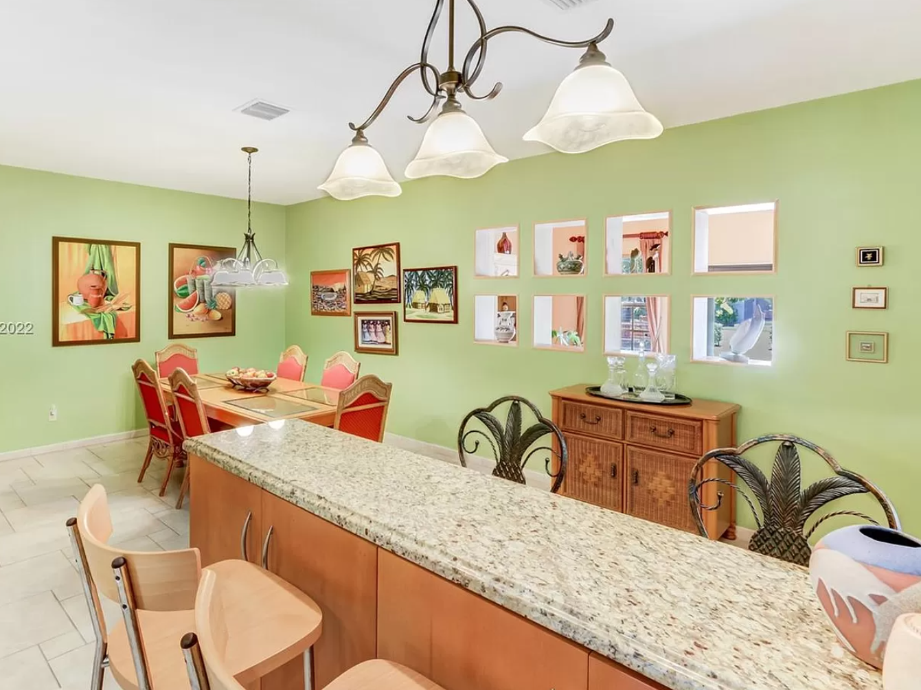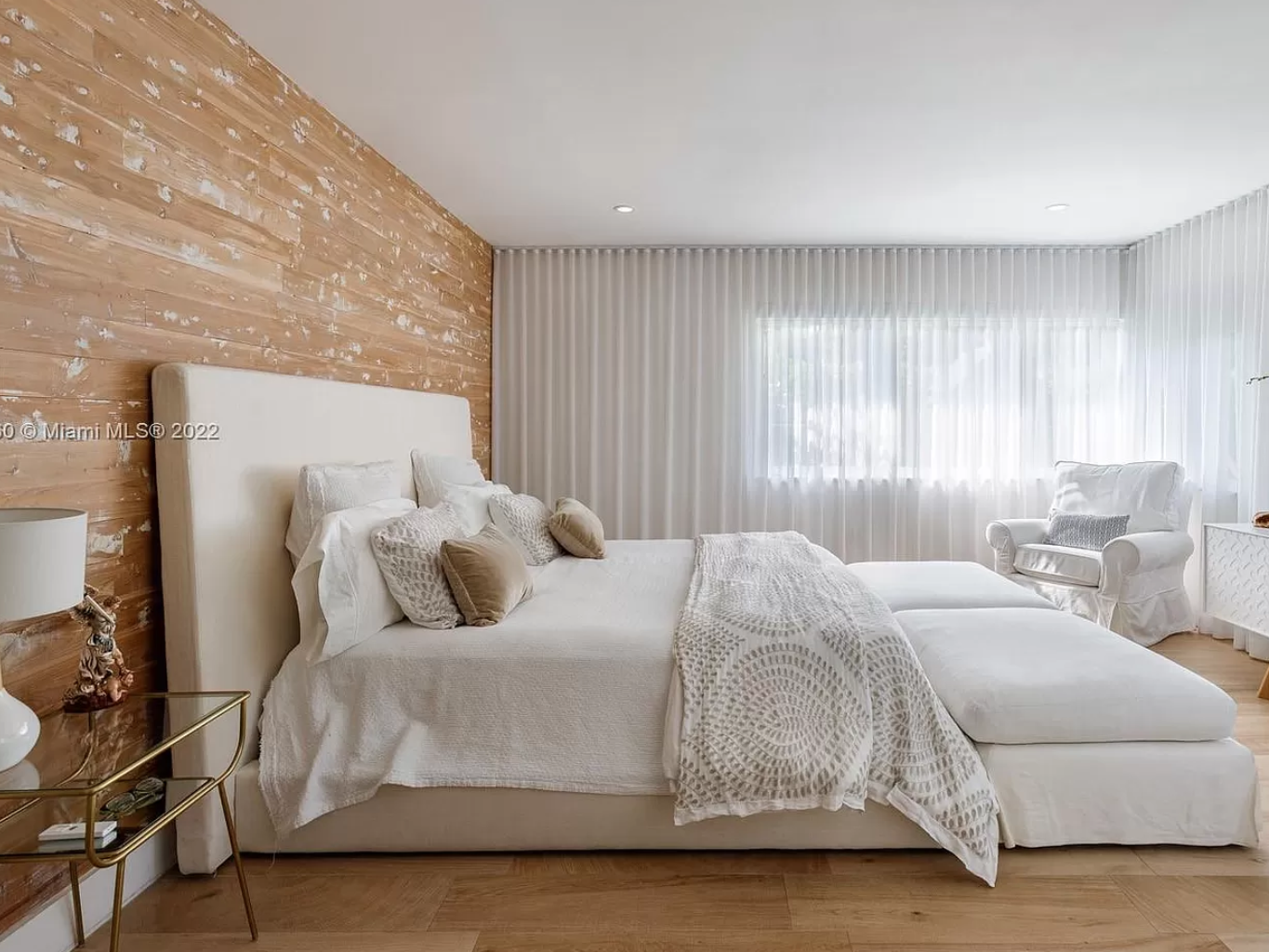 There’s also a roomy open floor plan and heated, saltwater swimming pool out back. Personally, I’m super into that wooden accent wall in this bedroom. And of course, there’s the stellar location in one of Miami’s best neighborhoods.
