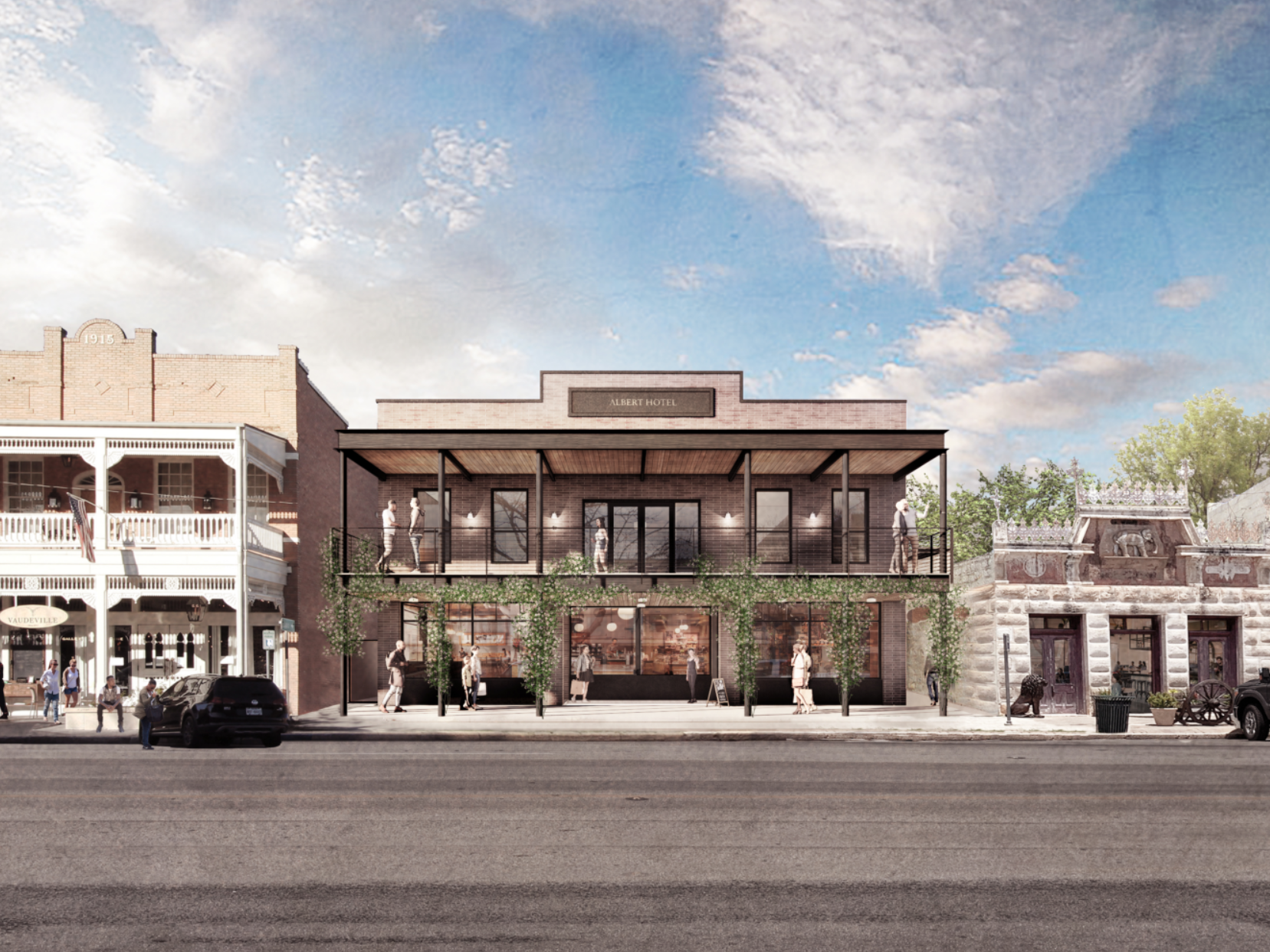 Set to open late this summer of 2022, Albert Hotel is an exciting addition to Fredericksburg that’s caused quite a buzz. The Texas wine country scene has an abundance of homey bed and breakfasts, but few bespoke, curated boutique hotels to speak of. Albert Hotel sprawls across a spacious two-acre lot on Main Street and Austin Street with plenty of room for the 2,000 square foot spa, spacious gardens, and the 110 guest rooms.