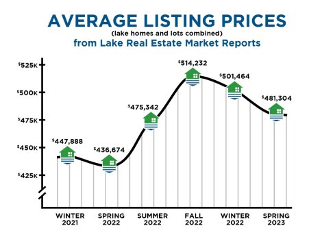 “Over the past six quarters, our Lake Real Estate Market Reports show listings from our 34 states to range from as few as 58,849 and as high as 87,073. In the quarterly snapshots of the lake real estate market total inventory list prices over the same six seasons collectively ranged from $26 billion to nearly $45 billion,” he said. “The average of all our inventory, both lake homes and lots, ranged from $436,674 to $514,232.”